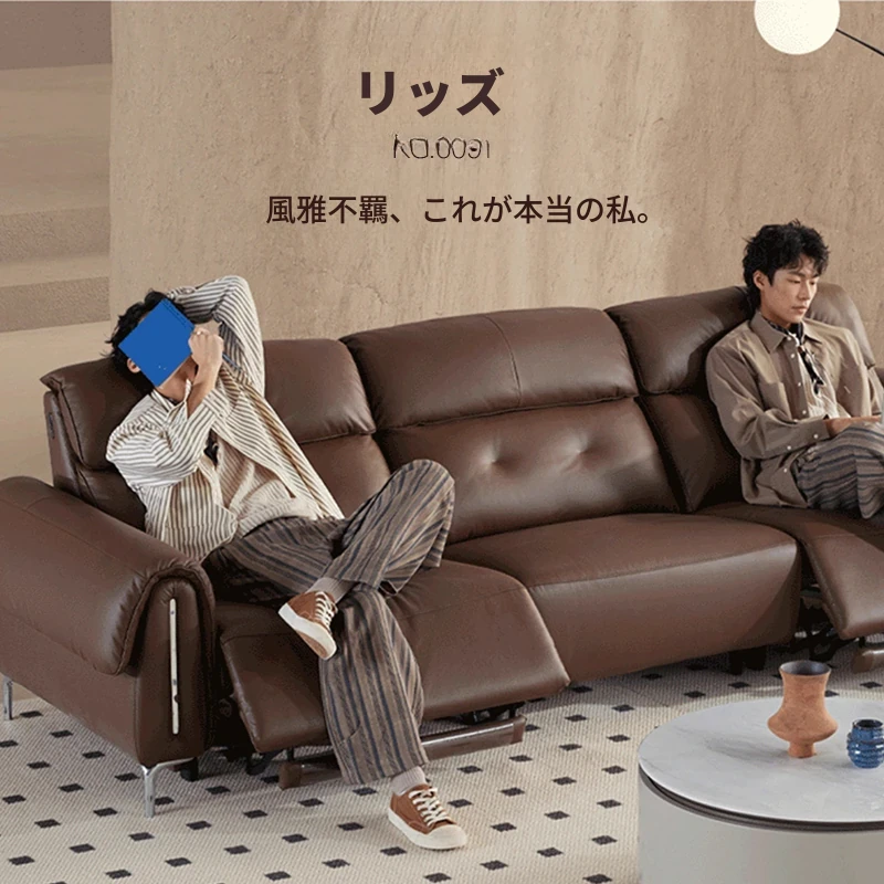 多機能調整可能な本革ソファ|高級牛革使用|現代的でシンプルなデザイン|壁に寄せられる小型サイズ|快適な電動ソファでリラックスしたひとときを!