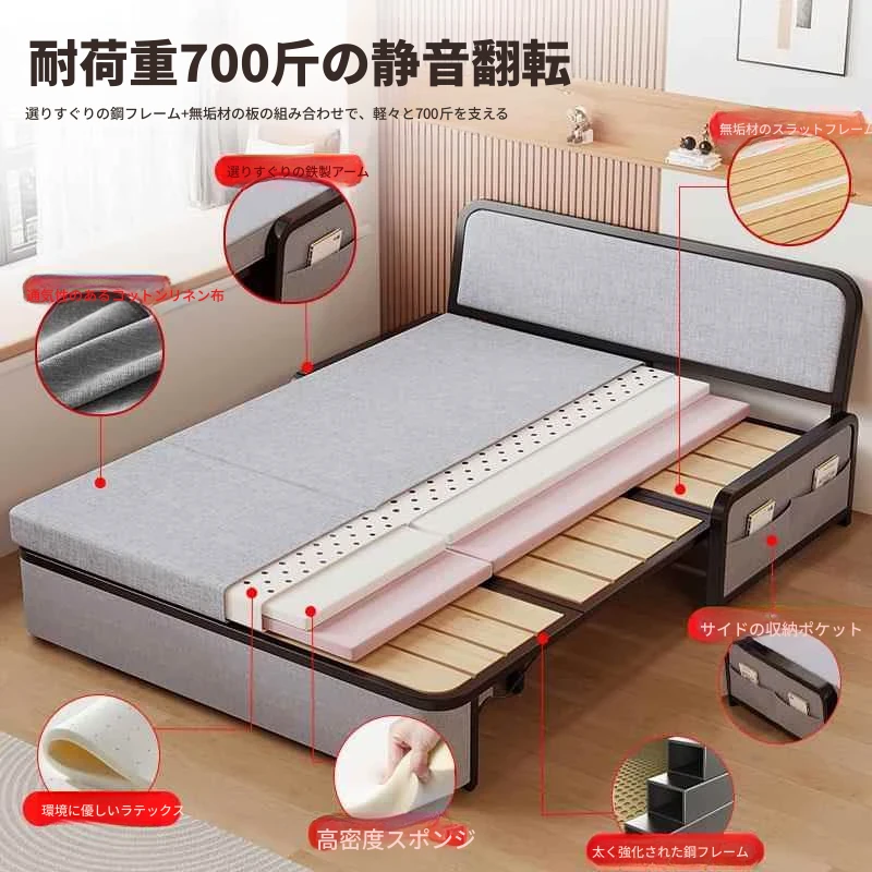 【香港送料無料】2024年新作!省スペース!折りたたみソファベッド、小型リビングに最適なシンプルで多機能なデザイン、引き出し付きで収納もバッチリ!