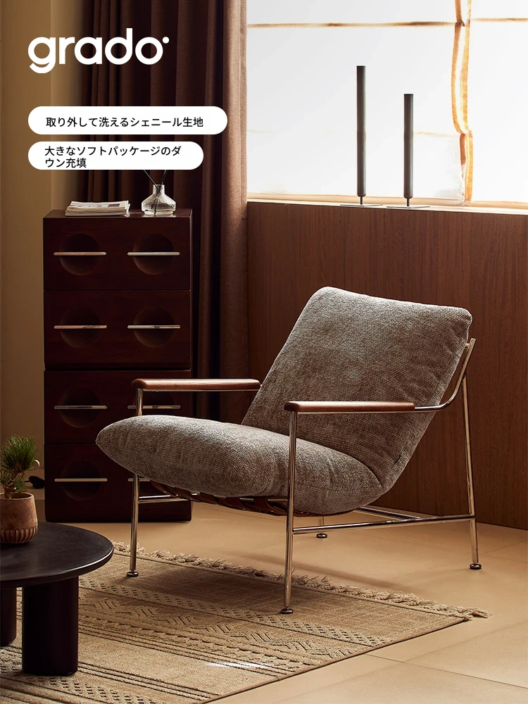 侘寂風の無垢材製シングルソファ - 人気の民宿スタイル、リラックスできる背もたれ付き、家庭用リビングにぴったりな一人掛けソファ!心地よい空間を演出します。