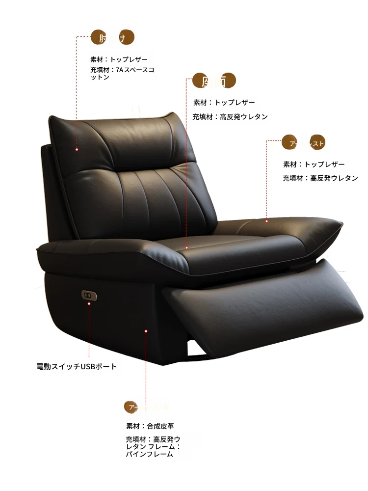 シンプルでモダンな電動機能付き一人掛けソファ|寝てもリラックスできるロッキングチェア|高級レザー使用の贅沢なデザイン|リビングに最適な快適さを提供します!