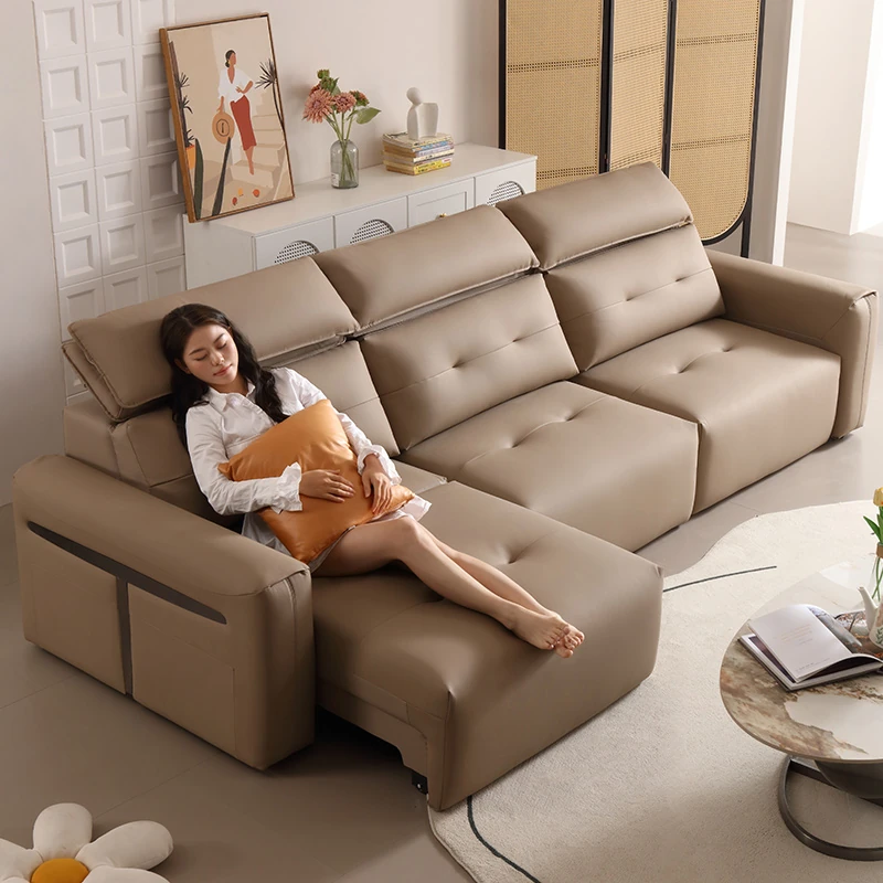 人気の電動ソファー!本革イタリアンデザインで、軽やかなラグジュアリー感を演出。現代的でシンプルなスタイル、壁に寄せられる伸縮機能付き。おしゃれなリビングにぴったりの一品です!