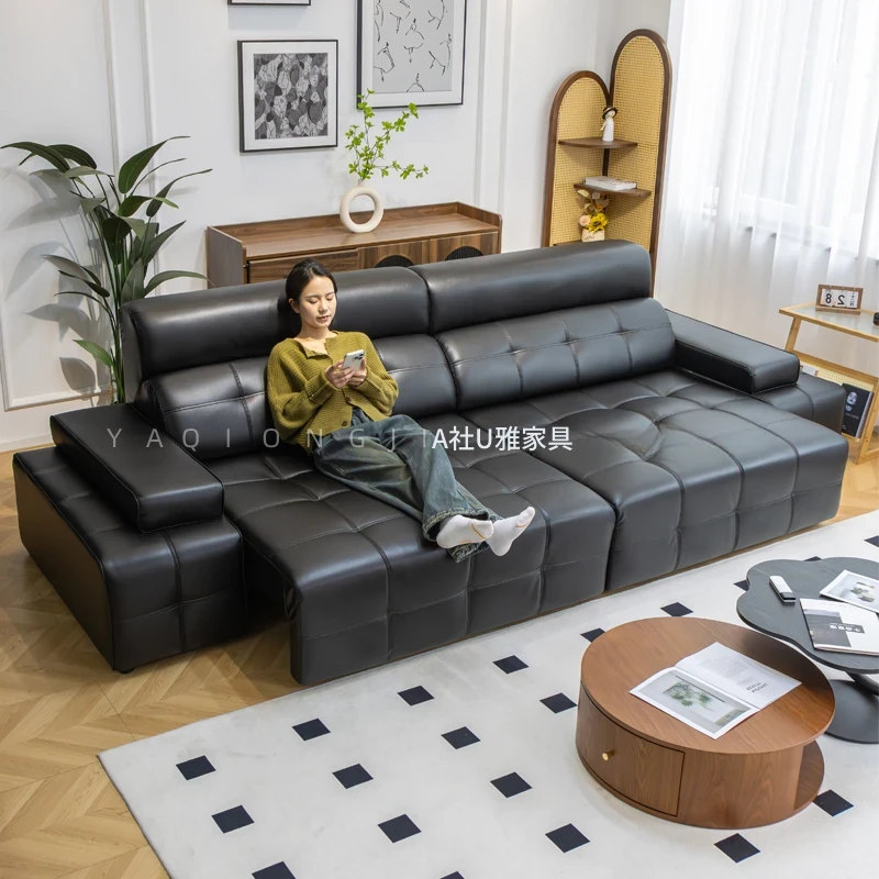 最新のイタリアンレザーソファ - モダンでシンプルなデザイン、大小様々な部屋にぴったり!多機能で伸縮可能な本革ソファベッド。快適なリビング空間を手に入れよう!