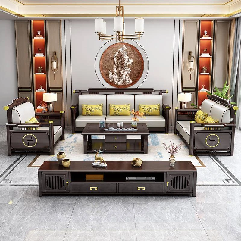 新中式デザイン!高級木材使用のシンプルな実沙発!現代的な中式リビングルームにぴったりのフルセット家具、贅沢なJ501#全妃木ソファセットで、あなたの空間を特別なものに。