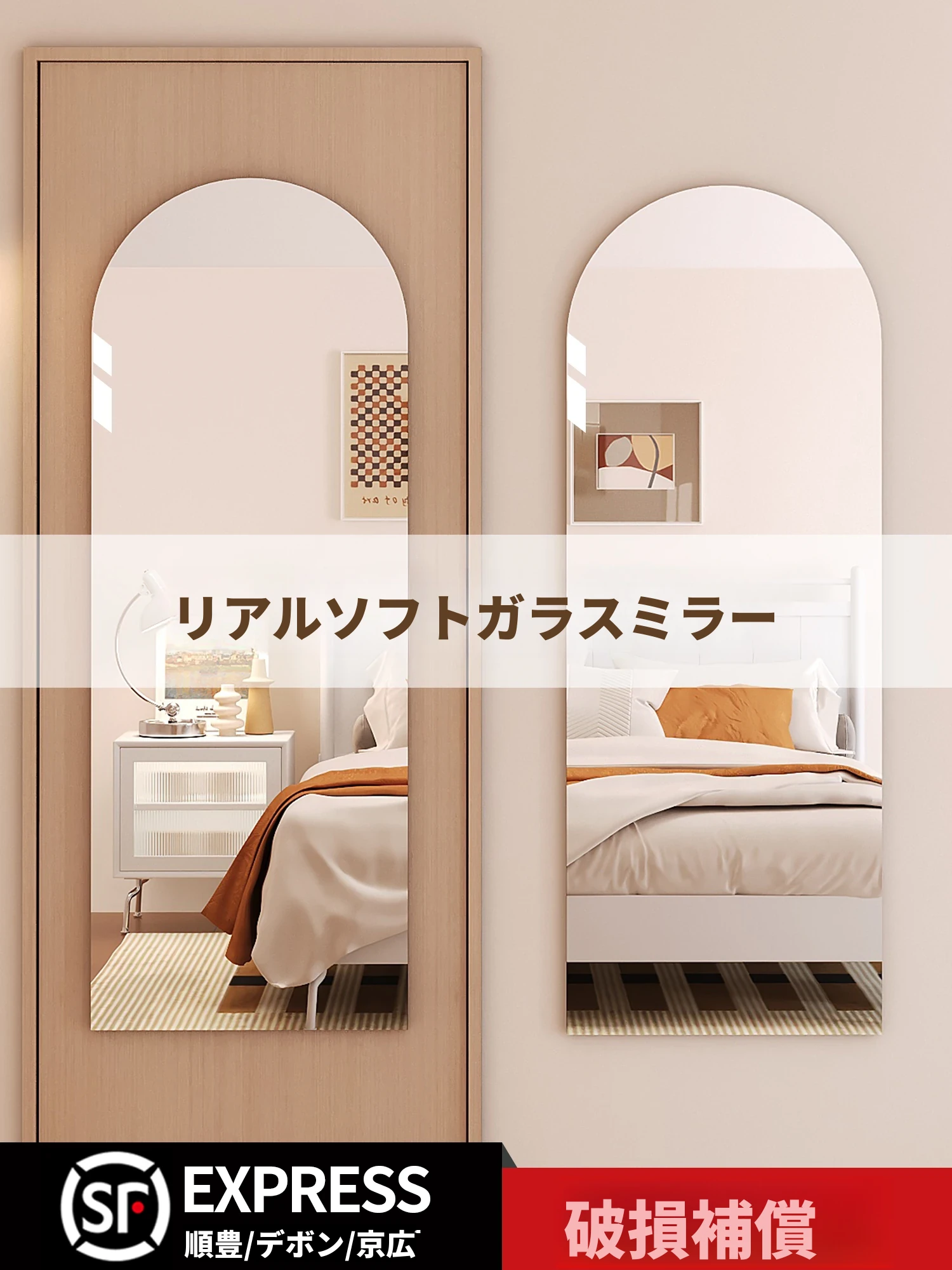 アーチ型アクリルソフトミラー 壁貼り式 自粘着クリーム風 おしゃれな全身鏡 女性用 寮の試着用にも最適!お部屋を広く見せる、便利で可愛いアイテム!