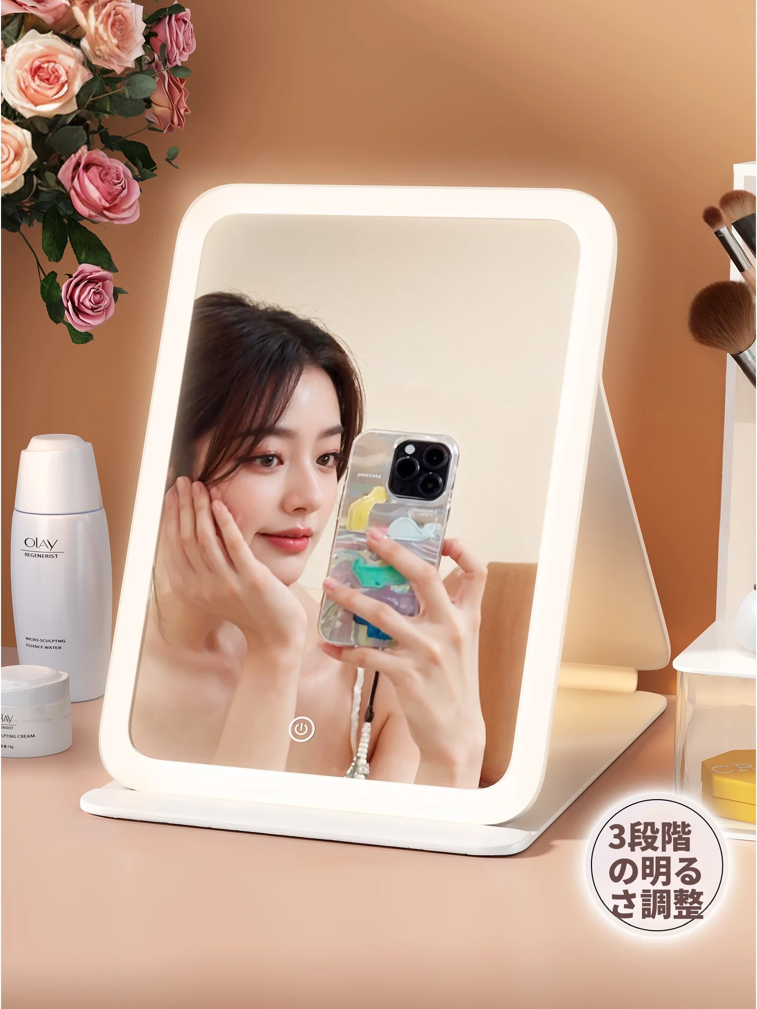 LEDスマートメイクアップミラー | 家庭用・寝室用 | 折りたたみ式大鏡 | 学生寮やデスクに最適 | おしゃれで機能的な化粧台ミラー!自分だけの美しさを引き出すアイテムです。