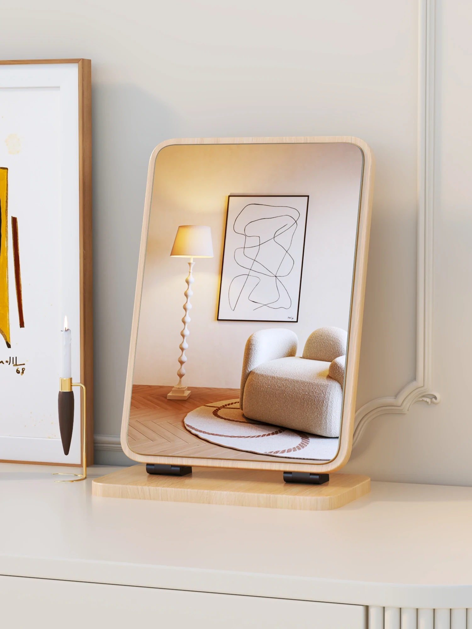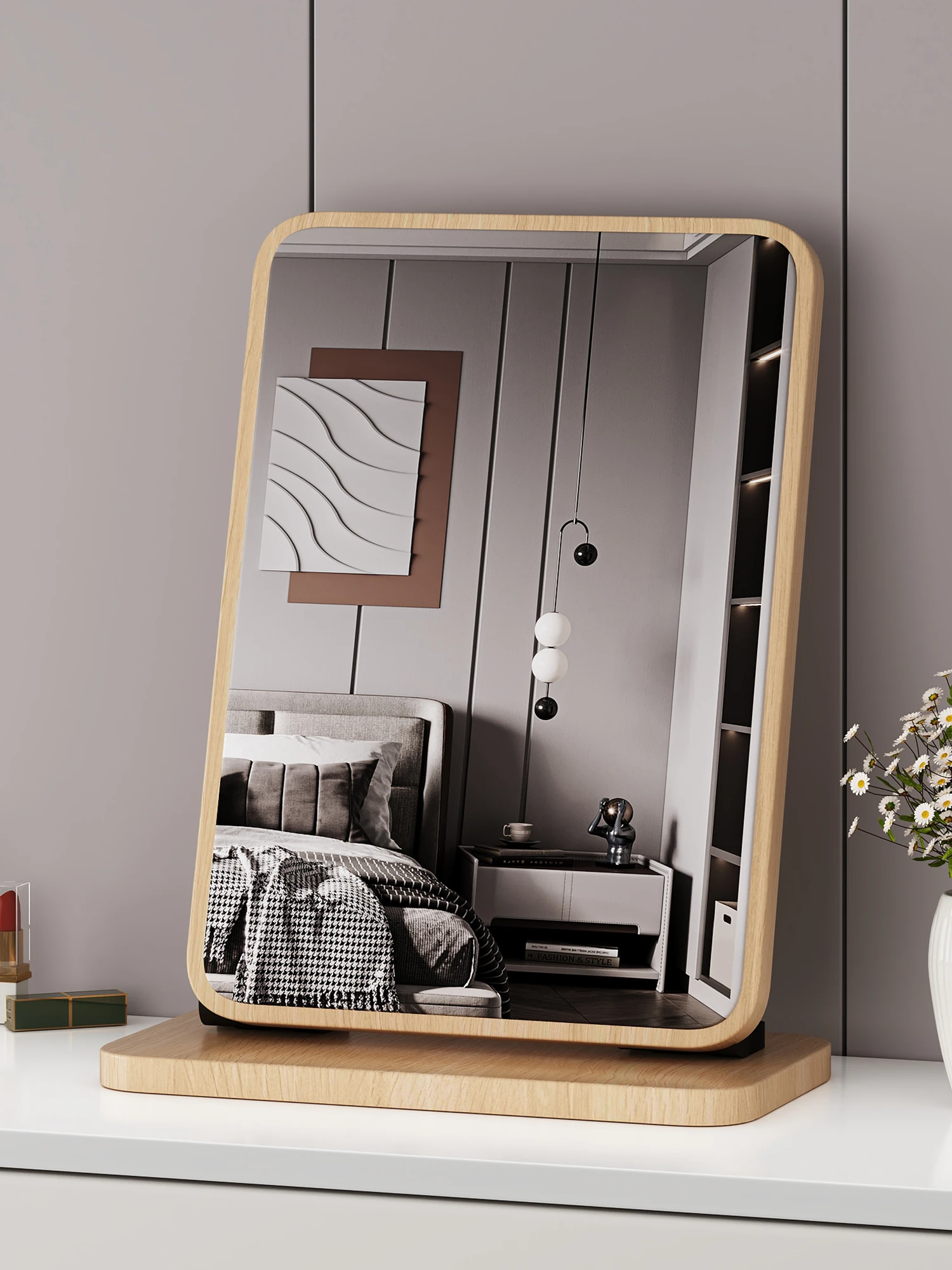 インスタ映えする木製ミラー!シンプルでスタイリッシュなデスク用化粧鏡、回転可能で使いやすい!女子学生や寮生活にもぴったりな大サイズのメイクアップミラー。お部屋をおしゃれに彩ります!