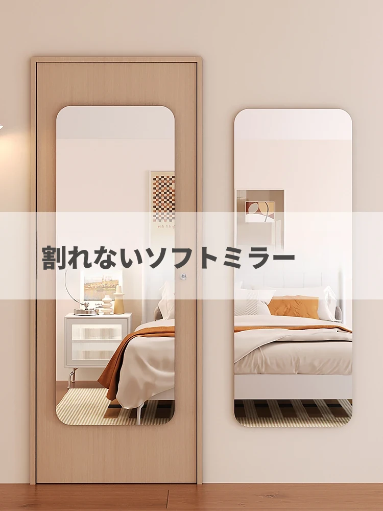 クリーム風の自宅用試着ミラー|寝室にぴったりの壁掛け・粘着式アクリル全身鏡|女性用・寮生活に最適な柔らかい鏡で、スタイリングが楽しくなる!
