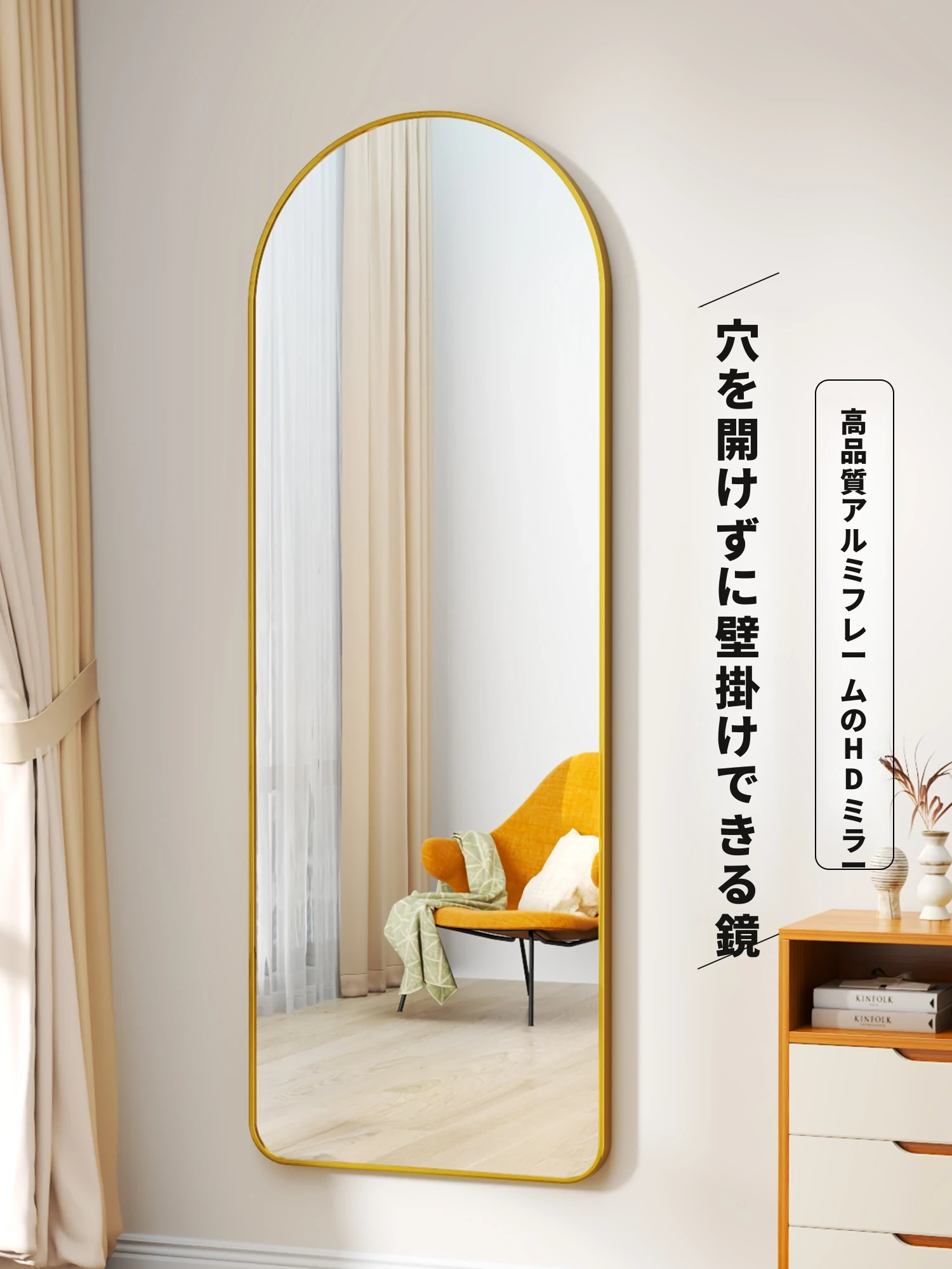 アルミ合金製の全身ミラー - 壁に貼るだけの簡単取り付け!穴を開けずに使える、アーチ型のスタイリッシュな衣服チェックミラー。家でのファッションスタイルを楽しむ新しい必需品!