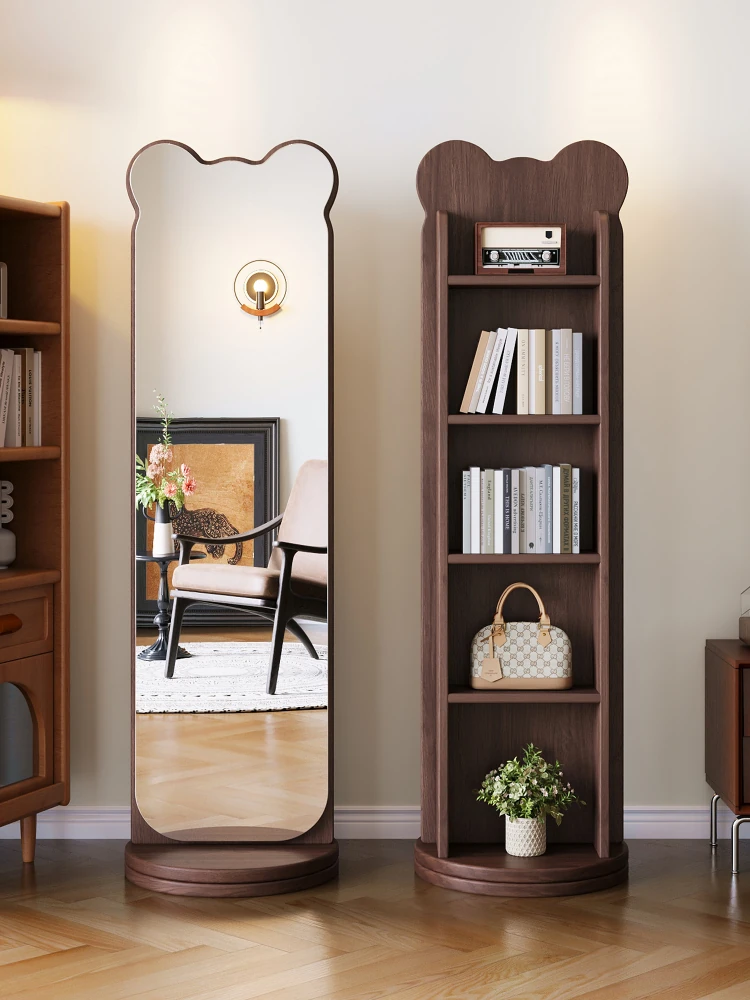 くまの回転式ドレッサーミラー&雑誌ラック付き全身鏡!移動可能な収納力抜群の試着鏡。おしゃれなインテリアにぴったり!お部屋をスッキリ整理整頓しながら、毎日のコーディネートを楽しもう!
